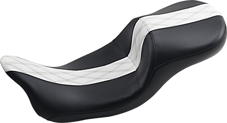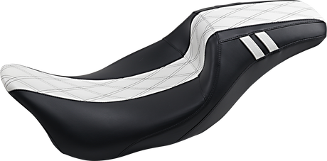 LE PERA Maverick Daddy Long Legs Seat - Black W/White HR Inlay Double Diamond - FLH LK-957DLHR1