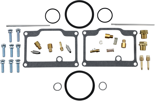 - Kit includes all necessary O-rings, gaskets, jets, needle, mixture screw, float bowl screws, float valve needle and seat (needle jet and other pressed-in jets are not included in kit)
