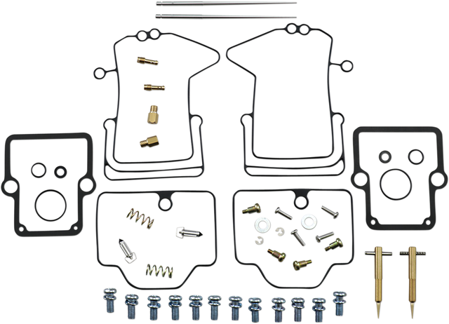 • Kit includes all necessary O-rings, gaskets, jets, needle, mixture screw, float bowl screws, float valve needle and seat (needle jet and other pressed-in jets are not included in kit)