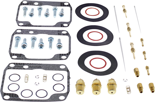 • Kit includes all necessary O-rings, gaskets, jets, needle, mixture screw, float bowl screws, float valve needle and seat (needle jet and other pressed-in jets are not included in kit)