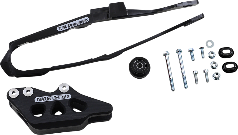• The kit includes dirt cross chain slider, lower powerlip roller or frame pad, and rear chain guide (either factory edition #1 or #2)
