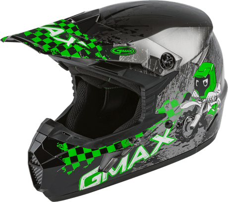 GMAX Youth Mx-46y Off-Road Anim8 Helmet Dark Silver/Green Ym G3461801