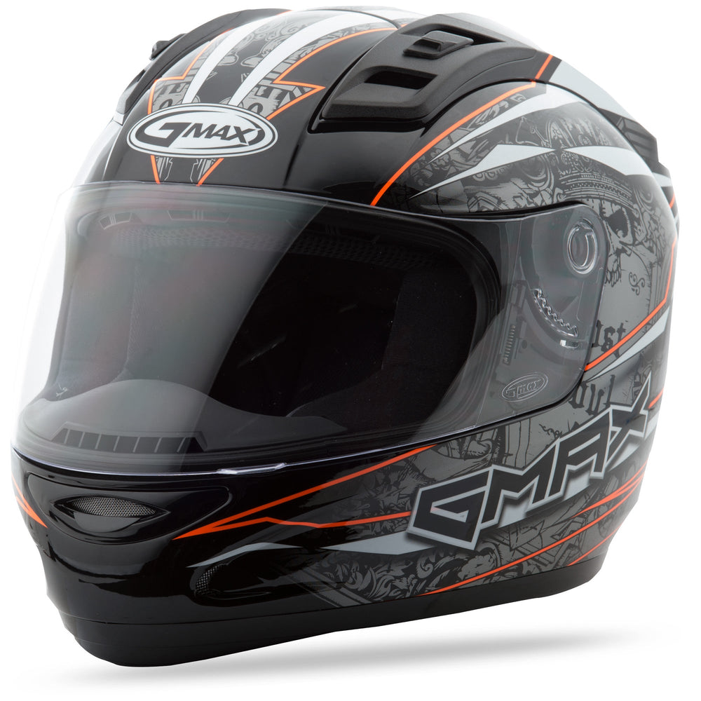 GMAX Gm-69 Full-Face Mayhem Helmet Black/Silver/Hi-Vis Orange Md G7693695 TC-26