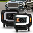 ANZO 2014-2015 GMC Sierra 1500 Projector Headlights w/ Light Bar Black Housing (Halogen Type) 111513