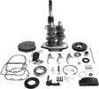 - Includes a polished trap door, 6-speed gear set (3.24:1 1st gear/.86:1 6th gear), 28-tooth motor sprocket, longer primary chain, adjusting shoe, fixed spindle-shift drum and anti-overshift ratchet shift pawl assembly