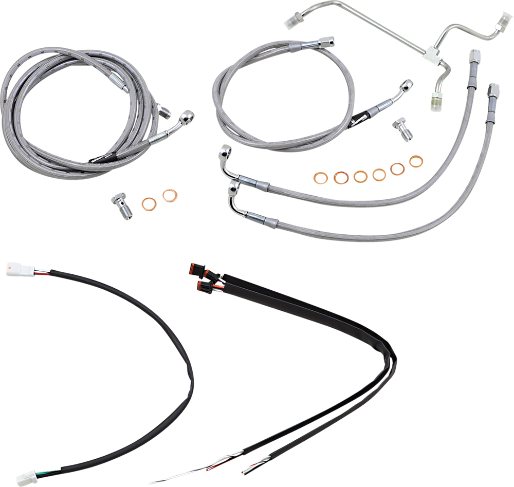 BURLY BRAND Handlebar Cable/Brake Line Kit - Complete - 16" Ape Hanger Handlebars - Stainless Steel B30-1165