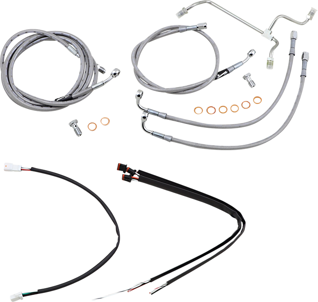 - Kit includes extended brake line, extended clutch cable/clutch line, extended throttle/idle cables as required and all necessary wiring