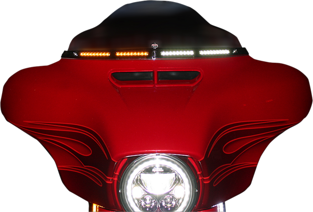 - Features white running light and amber turn signal