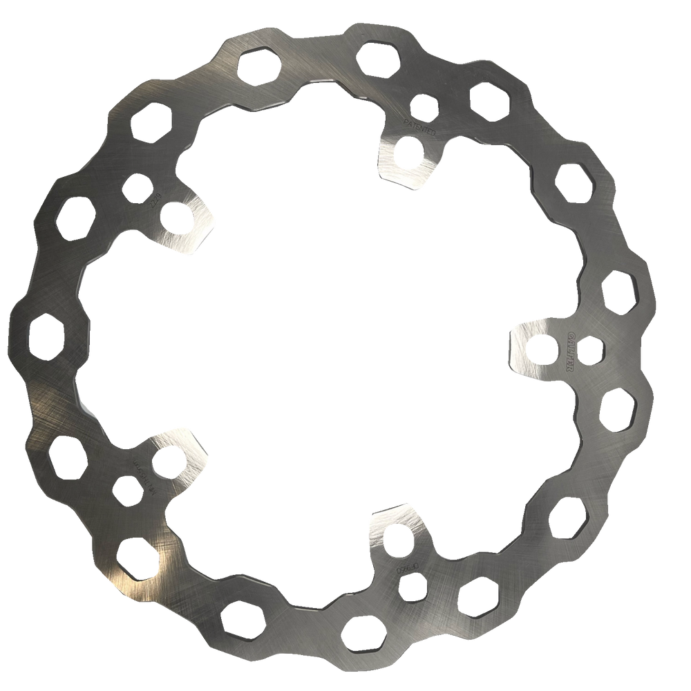 • Less unsprung weight (up to 40% lighter than standard round rotors) reduces gyroscopic effect and improves the manueverability of the motorcycle