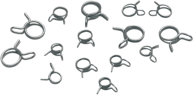 • Self-tensioning wire hose clamps for fuel or vacuum lines