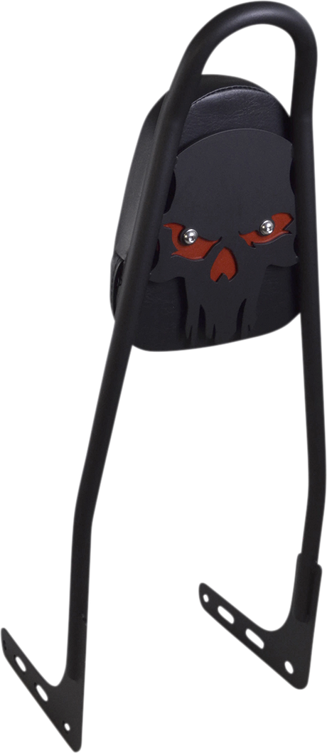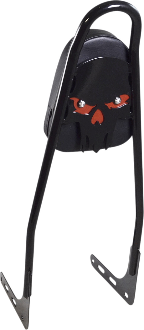 MOTHERWELL One-Piece Sissy Bar - Matte Black - Skull - With Red Pad 156T18-MB-SR-WP