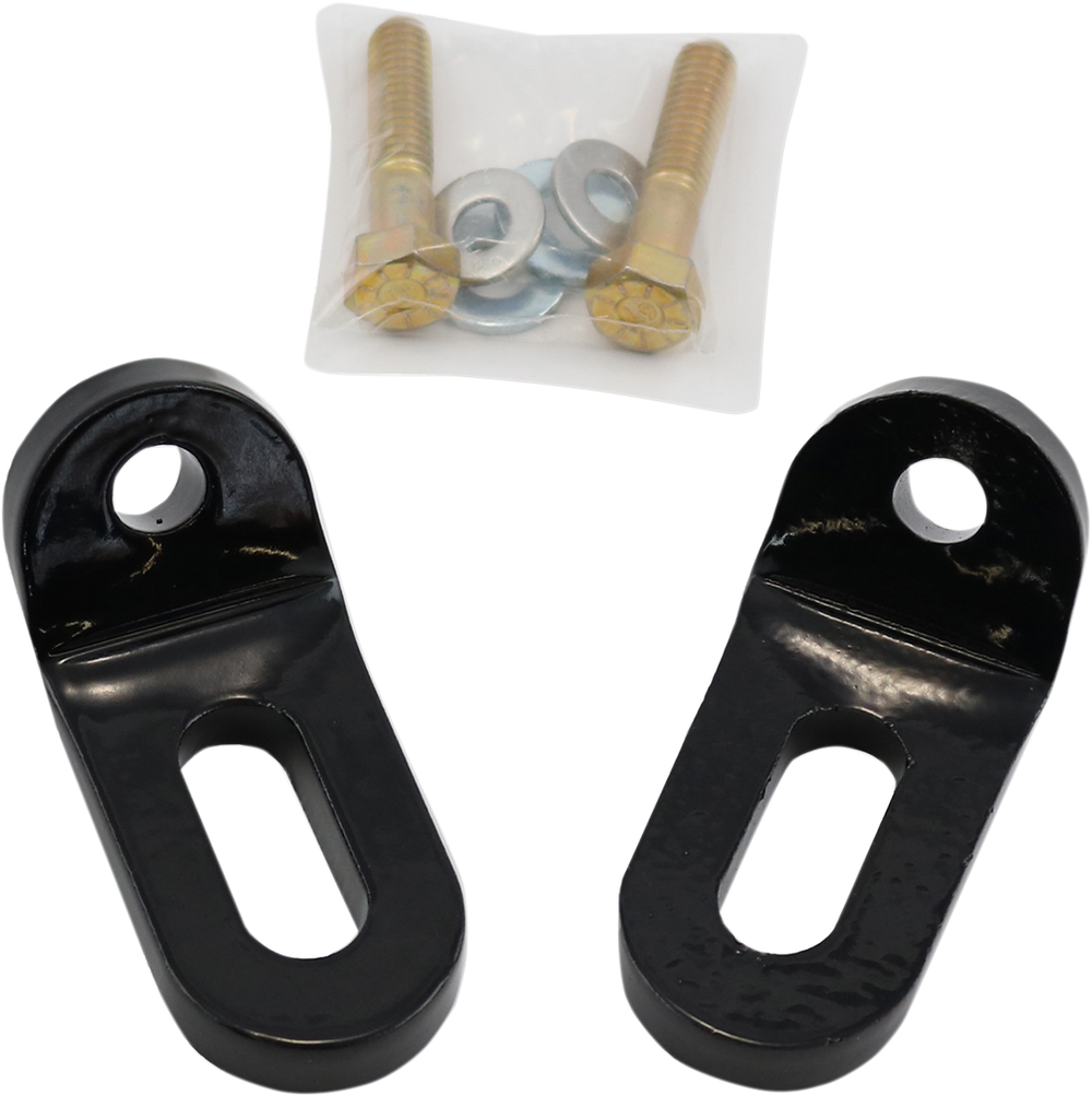 - Simple, strong steel brackets that mount at the front gas tank tab