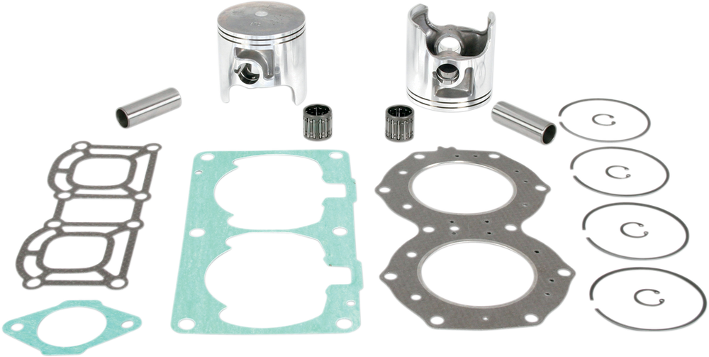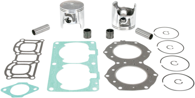 • Include pistons, rings, pins, clips, racing needle bearings, head and base gaskets, intake and exhaust gaskets