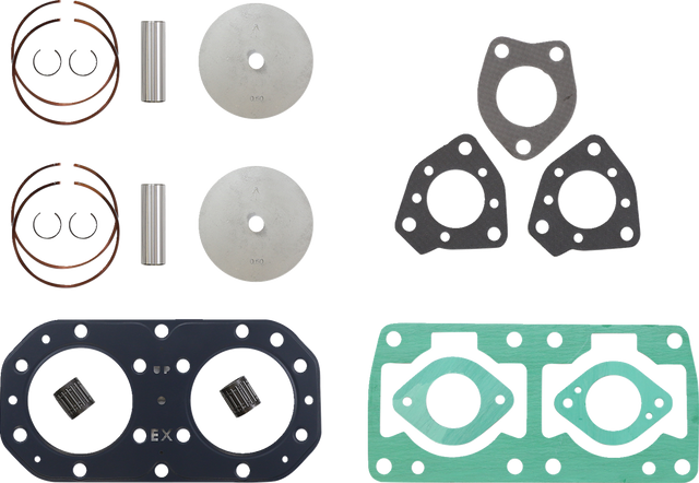 - Include pistons, rings, pins, clips, racing needle bearings, head and base gaskets, intake and exhaust gaskets