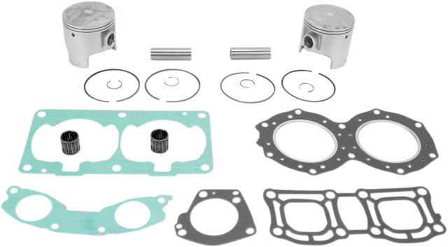 - Include pistons, rings, pins, clips, racing needle bearings, head and base gaskets, intake and exhaust gaskets