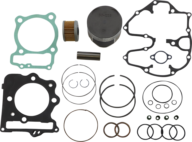 - Includes pistons, rings, pins, clips, needle bearings, head and base gaskets and intake and exhaust gaskets and oil filter for 4-stroke models