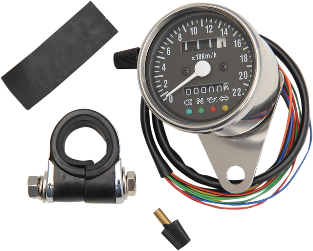 DRAG SPECIALTIES KPH Mini Mechanical Speedometer with LED Indicators - Black Face - 2:1 Ratio - 2.4" ACT 220KM/H SPEEDO 21-6818LEDPB
