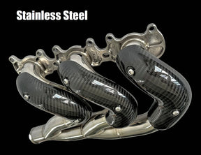 We offer two material options either lightweight Ti1 Titanium or High-Nickel Stainless Steel. Each option significantly improves exhaust flow efficiency as a result of having 15% larger exhaust ports with much improved flow by creating a low-pressure area (mild venturi effect) when exhaust gases pass each exhaust port. This characteristic is essential for enhancing engine volumetric efficiency, something that the OEM 3-into-1 manifold doesn't achieve.