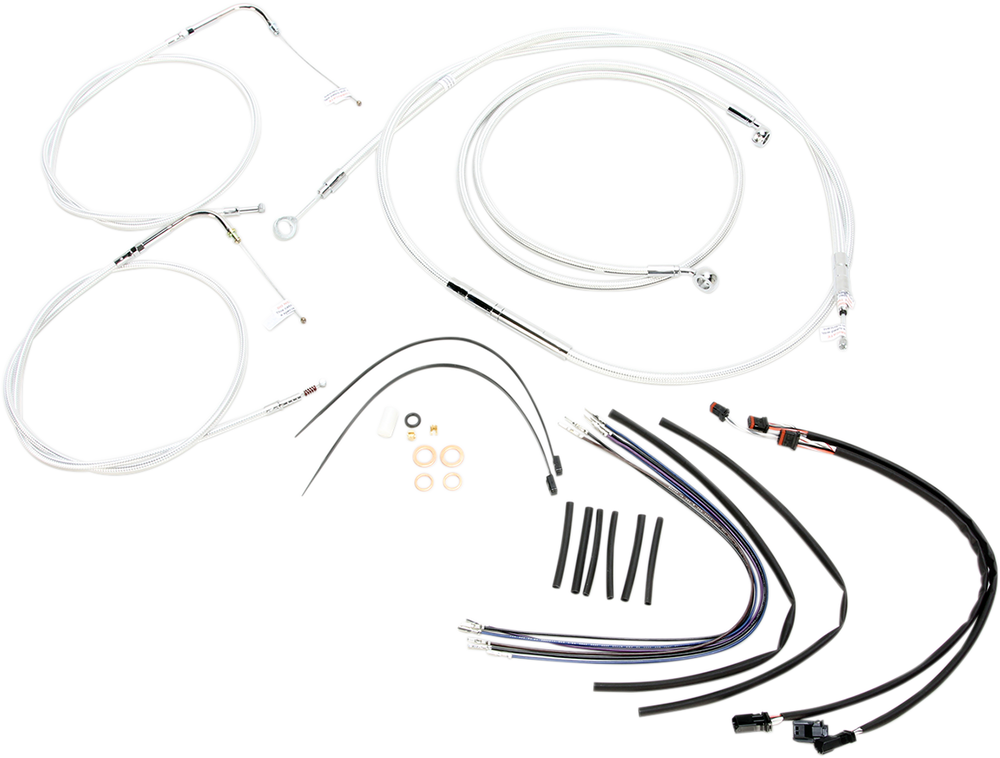• Kits include: Magnum 1-1/4" Caliber Handlebars, throttle and idle cables or throttle-by-wire extensions, a clutch cable or hydraulic clutch line, brake lines, copper crush washers, hardware, and any necessary switch wiring or turn signal extensions