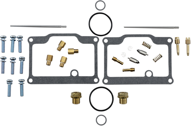- Kit includes all necessary O-rings, gaskets, jets, needle, mixture screw, float bowl screws, float valve needle and seat (needle jet and other pressed-in jets are not included in kit)