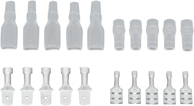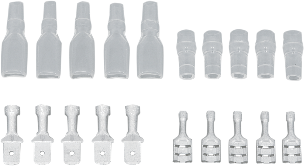 • Includes five each of male/female flat terminals and plastic terminal sleeves/covers