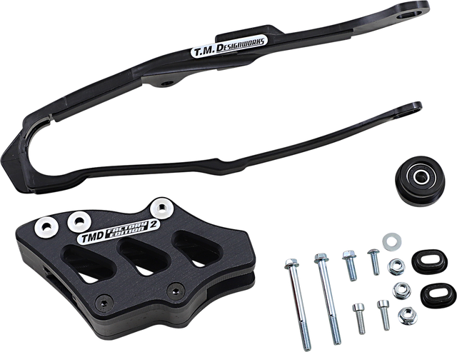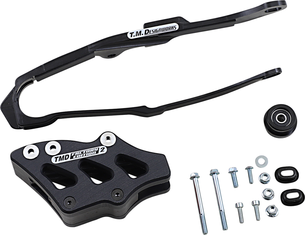 - The kit includes dirt cross chain slider, lower powerlip roller or frame pad, and rear chain guide (either factory edition #1 or #2)