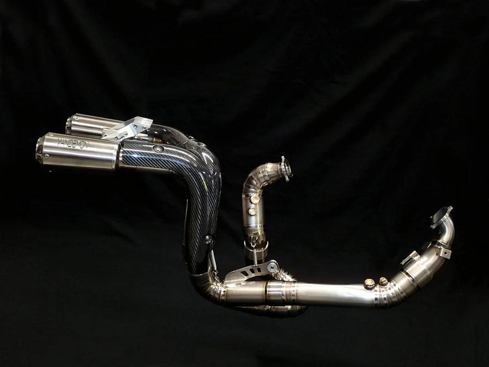 Vandemon Exhaust systems achieve maximum performance and style with a great sound. They use the latest manufacturing techniques and exotic materials, such as Titanium, which makes for a significantly lighter exhaust system with less heat retention than the OEM system.