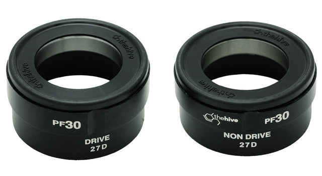 Our innovative thread-together PF30 bottom bracket adapt e*thirteen cranks to fit pressfit BB shells, but space the bearings nice and wide outside the BB shell for maximum stiffness. A threaded center tube keeps bearings properly aligned for longer life and creak-free performance