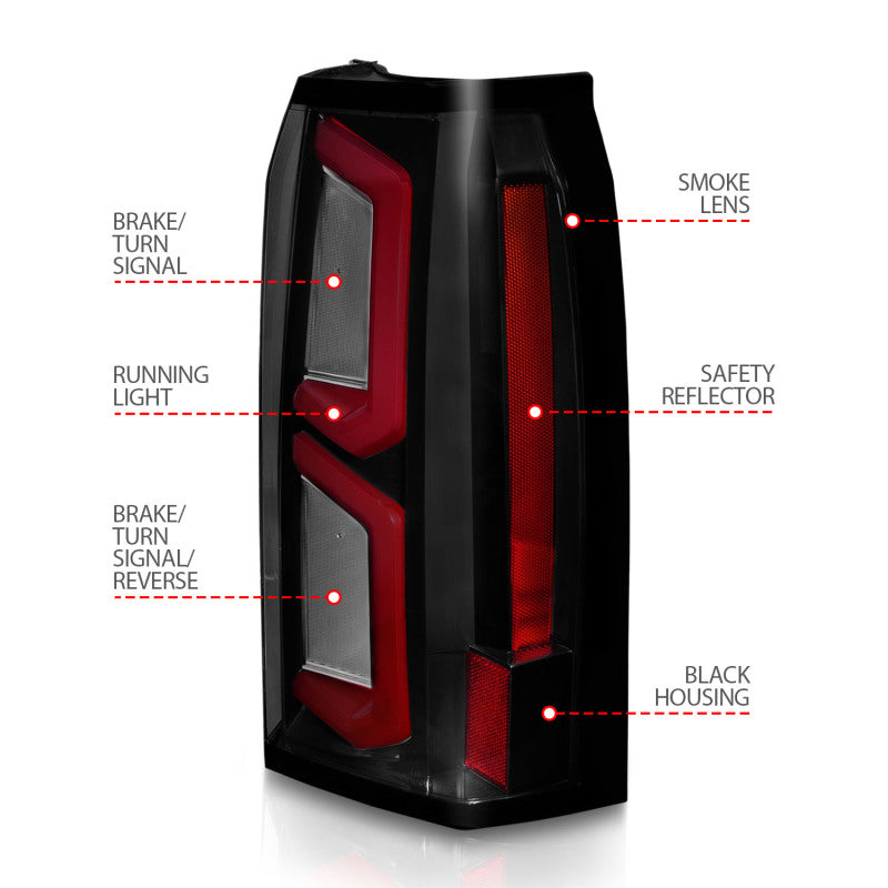 ANZO 2015-2020 Chevrolet Tahoe LED Tail Lights w/ Light Bar Black Housing Somke Lens 311375