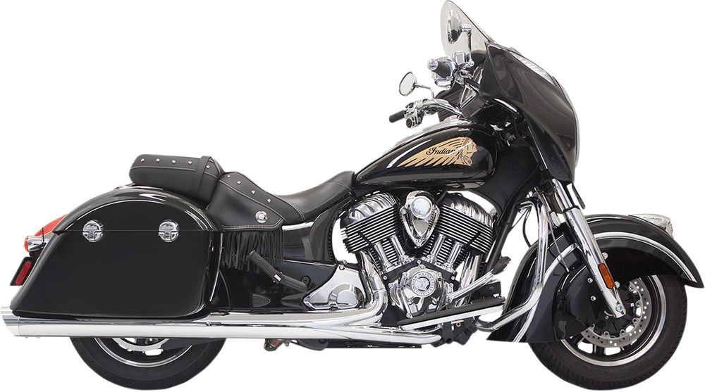 - Los silenciadores deslizables de 4" se montan en los tubos de dirección originales y caben debajo de las bolsas rígidas.