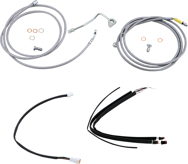 BURLY BRAND Handlebar Cable/Brake Line Kit - Complete - 15" Ape Hanger Handlebars - Stainless Steel B30-1233