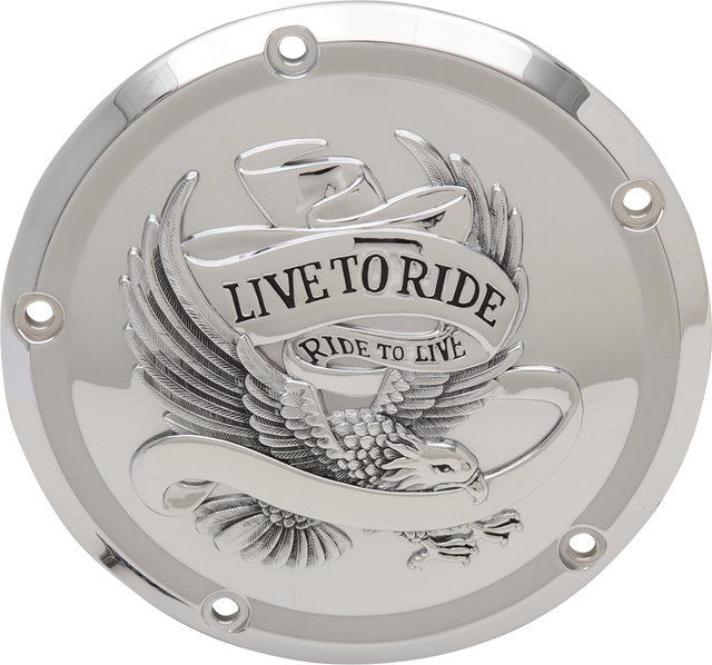 DRAG SPECIALTIES Live to Ride Derby Cover - 5 agujeros - Cromo D33-0110CA