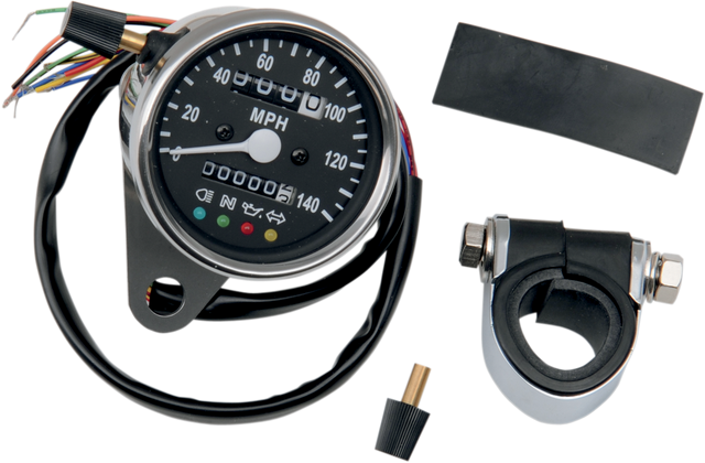 DRAG SPECIALTIES MPH Mini velocímetro mecánico con indicadores LED - Cara negra - Relación 2240:60 - 2.4" 21-6840LEDPB está agotado y se enviará tan pronto como vuelva a estar disponible.
