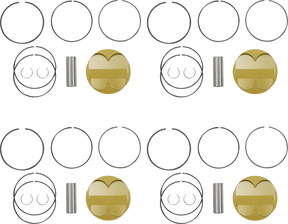 - Complete kit includes all necessary pistons, rings, wrist pins, and wire locks under one part number