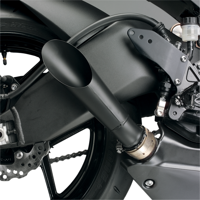 - Moto-GP style slip-on muffler with stainless steel megaphone canister