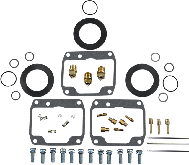 - Kit includes all necessary O-rings, gaskets, jets, needle, mixture screw, float bowl screws, float valve needle and seat (needle jet and other pressed-in jets are not included in kit)