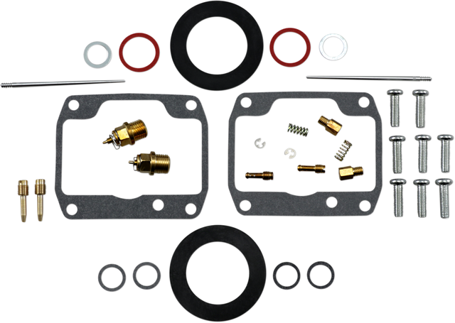 - Kit includes all necessary O-rings, gaskets, jets, needle, mixture screw, float bowl screws, float valve needle and seat (needle jet and other pressed-in jets are not included in kit)