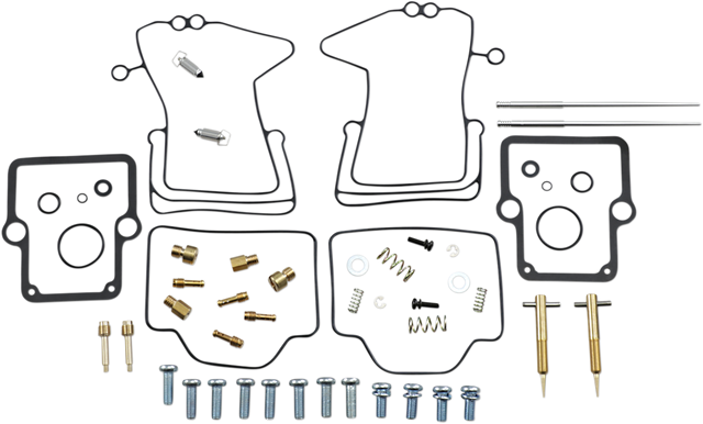 - Kit includes all necessary O-rings, gaskets, jets, needle, mixture screw, float bowl screws, float valve needle and seat (needle jet and other pressed-in jets are not included in kit)