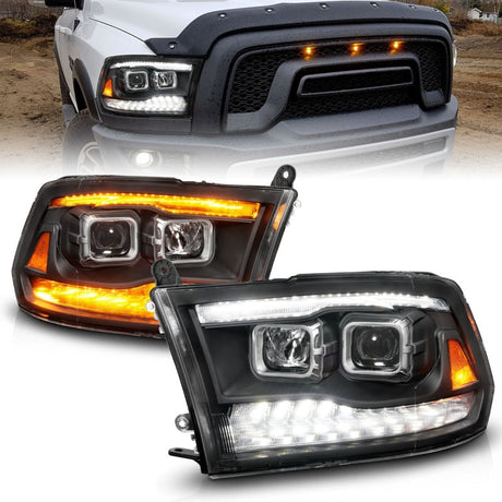 ANZO 09-18 Dodge Ram 1500/2500/3500 Proj HL Headlights Switchback + Sequential - Black Amber 111611