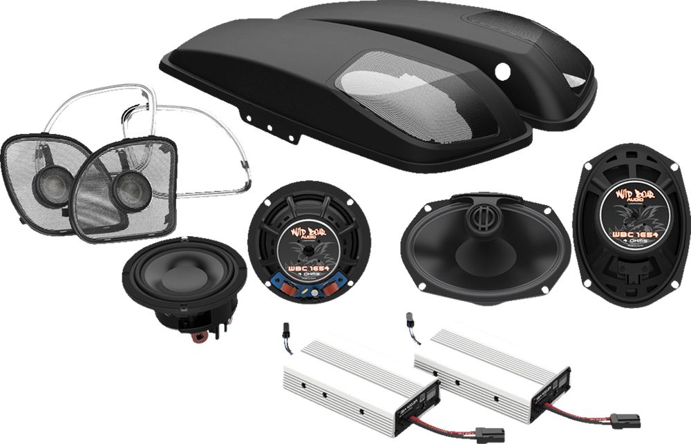- Complete kits with fairing speakers, saddlebag lids with 6"x9" speakers and 2 amps for 800 watts of total power