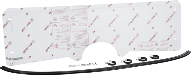 The Open Trail half windshield is made with ultra durable 0.177 Makrolon® Polycarbonate for long lasting, high strength protection and a clear view of the trail. This half windshield is 11 tall. The windshield has a seal at the bottom that rests against your vehicle. It is attached to your roll bars using four galvanized steel, rubber coated P clamps that are bolted to the windshield through pre-drilled holes.