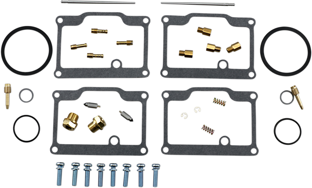 - Kit includes all necessary O-rings, gaskets, jets, needle, mixture screw, float bowl screws, float valve needle and seat (needle jet and other pressed-in jets are not included in kit)