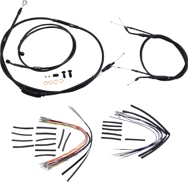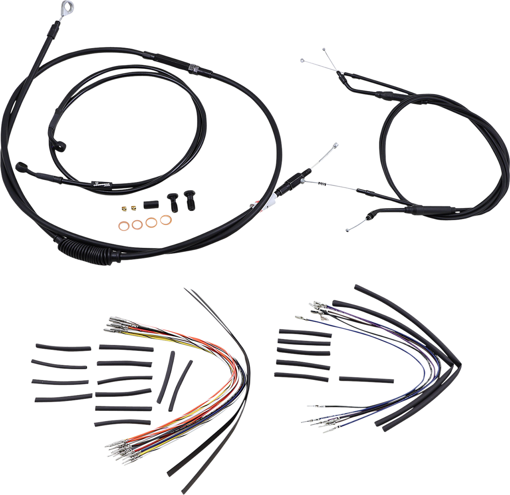 • Kit includes extended brake line (unless noted), extended clutch cable/clutch line, extended throttle/idle cables as required and all necessary wiring