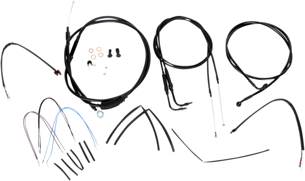• Kit includes extended brake line (unless noted), extended clutch cable/clutch line, extended throttle/idle cables as required and all necessary wiring