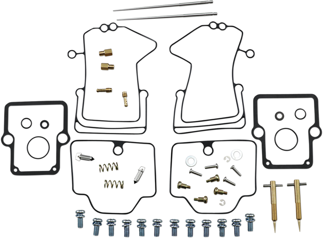 - Kit includes all necessary O-rings, gaskets, jets, needle, mixture screw, float bowl screws, float valve needle and seat (needle jet and other pressed-in jets are not included in kit)