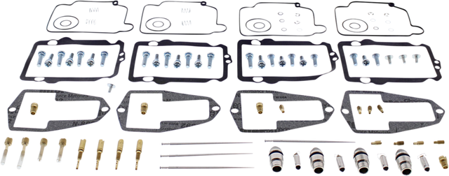 - Kit includes all necessary O-rings, gaskets, jets, needle, mixture screw, float bowl screws, float valve needle and seat (needle jet and other pressed-in jets are not included in kit)