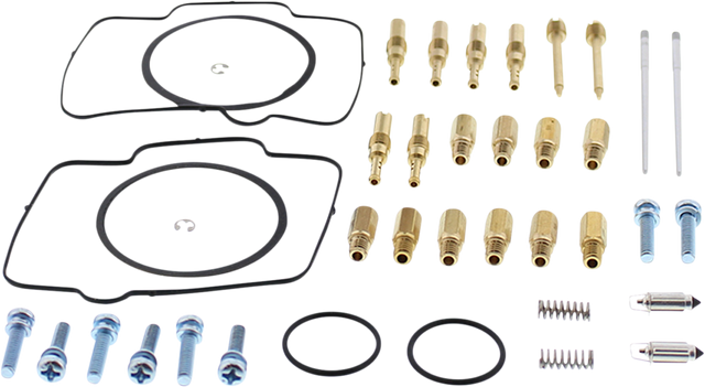 - Kit includes all necessary O-rings, gaskets, jets, needle, mixture screw, float bowl screws, float valve needle and seat (needle jet and other pressed-in jets are not included in kit)