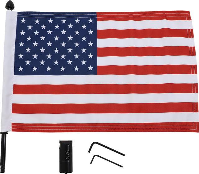 - Includes American flag
