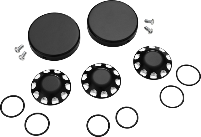 - The 3-set custom axle caps are made from durable aluminum with CNC etched styling to compliment Show Chrome accessories handlebar end weights and reverse shifter lever