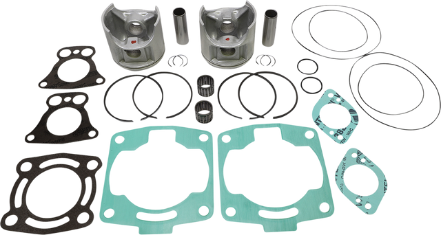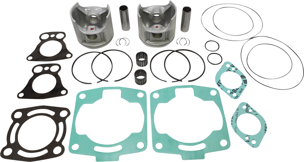• Include pistons, rings, pins, clips, racing needle bearings, head and base gaskets, intake and exhaust gaskets